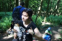 Videli sme tak ďaleko...akoby sme leteli lietadlom. Odfotili sme sa na vrchu a postupne sme schádzali dole. Potom sme našli ohnisko a začali sme si opekať. Po lahodných špekáčikoch sme sa vybrali ďalej. Cesta dole bola jednoznačne rýchlejšia, ale aj dosť náročná. Keď sme vyliezli z lesa bolo nám teplo ako ťavám. No zrazu niekto zakričal BOMBA! Hneď sme všetci skočili do trávy vysokej asi 80cm.